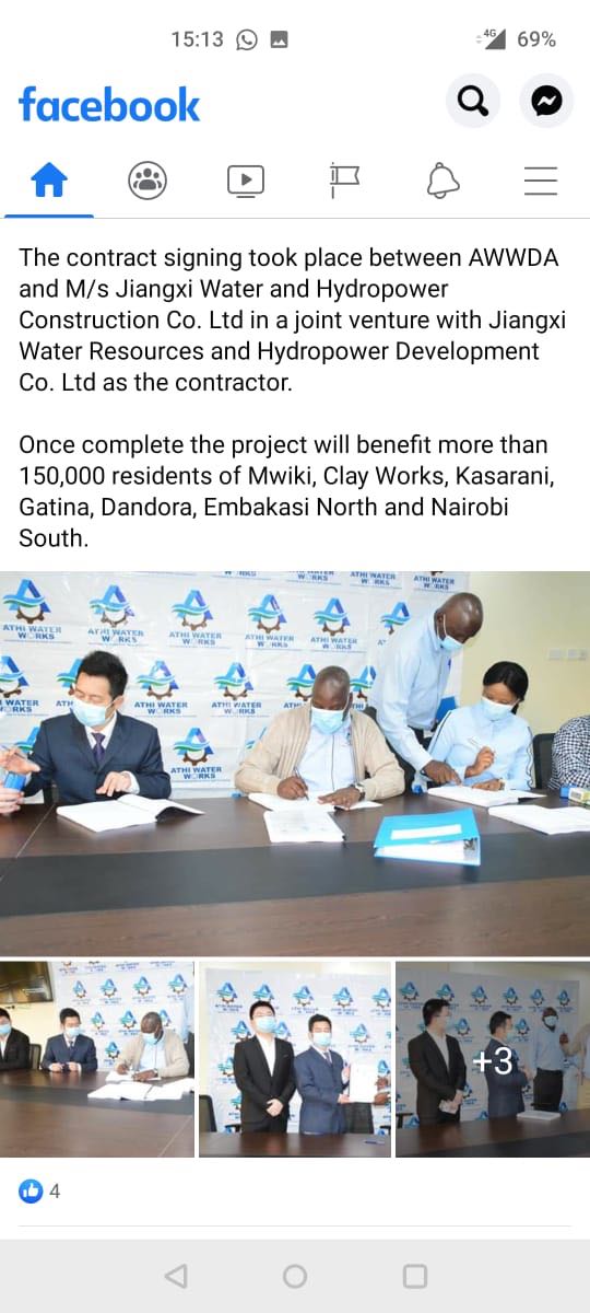 集團(tuán)資訊2021年3月19日當(dāng)?shù)貢r(shí)間上午八時(shí),肯尼亞分公司與肯尼亞阿西水務(wù)開(kāi)發(fā)局在阿西水務(wù)大廈簽訂了Mwiki污水管道項(xiàng)目施工合同??夏醽喒究偣こ處焺⑷鹆执矸止九c阿西水務(wù)局首席執(zhí)行官麥克共同出席簽約儀式并簽定施工合同。