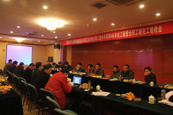 2012年1月11日,江西省五河及鄱陽湖區(qū)重點圩堤應(yīng)急防滲工程建設(shè)項目部在南昌市主持召開了水平防滲4標(biāo)單位工程暨合同工程完工驗收會,并順利通過了單位工程暨合同工程完工驗收。驗收會由省河湖局許盛豐處長主持,各參建單位代表到會并作了匯報,公司吳鐵凡總工程師、工程部郭洪有經(jīng)理等參加了驗收會。