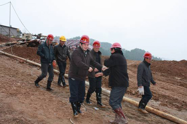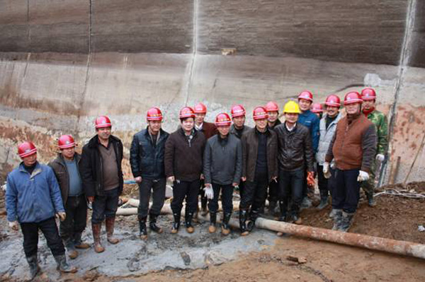 董事長、總經(jīng)理王元旦一行首先來到基坑澆筑、混凝土攪拌站等施工現(xiàn)場進(jìn)行察看,與施工人員一一握手,并聽取了春節(jié)期間帶領(lǐng)員工奮戰(zhàn)在施工一線的公司副總經(jīng)理聶玉和的生產(chǎn)情況匯報(bào)。董事長、總經(jīng)理王元旦詳細(xì)詢問了攪拌站的生產(chǎn)能力能否滿足施工要求,工程的進(jìn)展情況及后期施工中的各項(xiàng)措施,對(duì)項(xiàng)目部全體員工放棄節(jié)假日搶工期、保質(zhì)量、抓進(jìn)度的奉獻(xiàn)精神給充分肯定和高度評(píng)價(jià),他勉勵(lì)大家保證質(zhì)量安全的前提下,抓緊時(shí)間完成大壩防滲面板的施工、再苦再累也要咬緊牙關(guān)挺過去,并要求施工項(xiàng)目部合理安排好大家春節(jié)期間的工作和生活。
