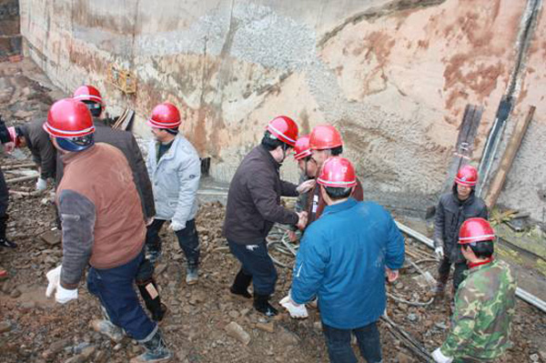 董事長總經(jīng)理王元旦與施工人員一一握手并合影留念