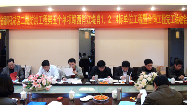 驗收會由江西省鄱陽湖區(qū)二期防洪工程第五個單項工程建設(shè)項目部副主任陶理志主持,建設(shè)項目部總工程師鄒軍賢、宜春市水利局劉啟明副局長、樟樹市水利局吳學(xué)輝、公司副總經(jīng)理胡鴻煌等出席了驗收會。