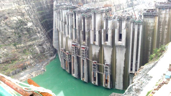 溪洛渡水電站位于四川省雷波縣和云南省永善縣接壤的金沙江峽谷段,是金沙江水電基地下游四個巨型水電站中最大的一個,以發(fā)電為主,兼有攔沙、防洪和改善下游航運等綜合效益的大型水電站。溪洛渡水電站樞紐由攔河壩、泄洪、引水、發(fā)電等建筑物組成。攔河壩為混凝土雙曲拱壩,壩頂高程610米,最大壩高278米,壩頂弧長698.07米;左、右兩岸布置地下廠房,各安裝9臺水輪發(fā)電機組,單機容量77萬千瓦,電站總裝機1386萬千瓦,多年平均發(fā)電量571.2億千瓦時。裝機容量與原來世界第二大水電站——伊泰普水電站(1400萬千瓦)相當,是中國第二、世界第三大水電站。
