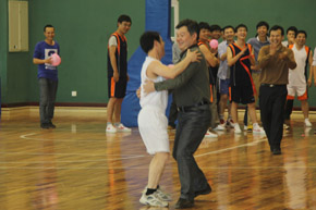 座談會(huì)結(jié)束后,大家乘車前往恒大體育館,活動(dòng)的第一項(xiàng)內(nèi)容是公司領(lǐng)導(dǎo)和青年員工共同完成的團(tuán)隊(duì)拓展游戲——“齊腳并進(jìn)”和“心心相印”兩項(xiàng)接力比賽。比賽過(guò)程中,公司領(lǐng)導(dǎo)和青年員工們熱情高漲,目標(biāo)明確,心往一處想,勁往一處使,充分發(fā)揮團(tuán)隊(duì)協(xié)作精神,爭(zhēng)分奪秒完成各項(xiàng)任務(wù),布滿汗水的笑臉在燈光下熠熠生輝,加油鼓勁和歡呼祝賀聲響成一片。拓展游戲項(xiàng)目結(jié)束,大家還進(jìn)行了籃球友誼賽和羽毛球比賽。