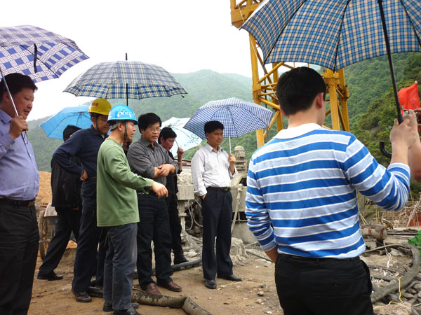 廖瑞釗副廳長在項(xiàng)目施工現(xiàn)場檢查施工生產(chǎn)情況,聽取了項(xiàng)目管理人員關(guān)于施工進(jìn)度及質(zhì)量安全等工作匯報(bào)。當(dāng)他聽到泰和縣洞口水庫除險(xiǎn)加固工程目前進(jìn)展比較順利,主體工程已完成70%左右,計(jì)劃于2013年8月底項(xiàng)目全面完工時(shí),廖瑞釗副廳長對工程的進(jìn)展表示滿意,他要求參建各方再接再勵(lì)完成好下一步工作,全力配合,確保工程質(zhì)量和安全。
