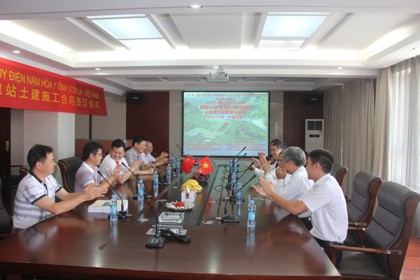 2013年7月22日,越南山羅省南化一級水電樞紐項(xiàng)目建設(shè)合同簽字儀式在我公司南昌市總部順利舉行,越南ANPHA水電投資股份公司董事長阮平陽和我公司董事長王元旦分別代表雙方簽署合同。出席簽約儀式的還有越南建設(shè)與機(jī)電股份公司(MECO)董事長阮玉平、ANPHA水電投資股份公司總經(jīng)理陳重朵,我公司副總經(jīng)理張周平、副總工程師鄒春明、項(xiàng)目經(jīng)理夏愛民等。