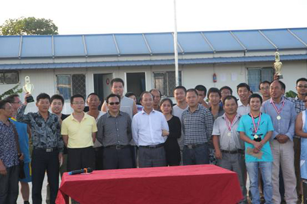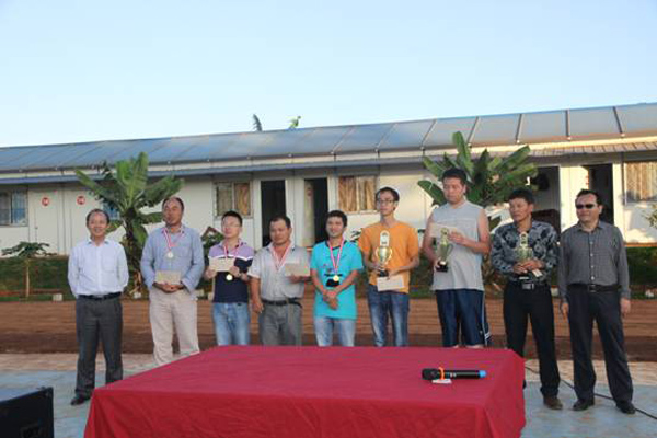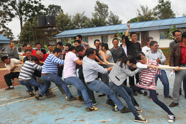 集團(tuán)資訊為了凝聚精神,交流感情,2014年12月25日,肯尼亞分公司第一屆迎新聯(lián)誼會在雙河正式舉辦。本次聯(lián)誼會共設(shè)拔河、籃球、CS三項(xiàng)團(tuán)體比賽項(xiàng)目,乒乓球、象棋、升級三項(xiàng)個人比賽項(xiàng)目及趣味套圈項(xiàng)目,肯尼亞辦事處及各在建項(xiàng)目均組隊(duì)參加了比賽。