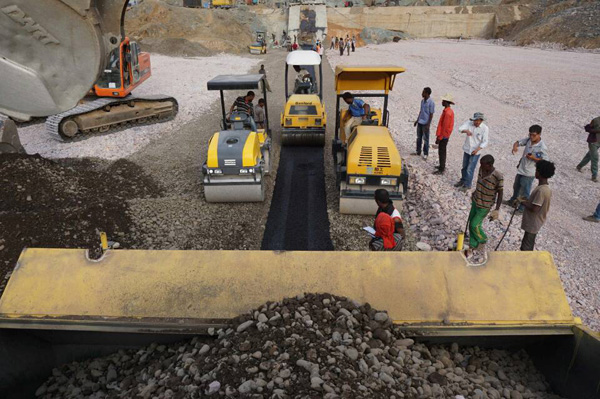 集團(tuán)資訊 埃塞俄比亞旱季熾熱的風(fēng)撲打著人們的面龐,也映襯了瀝青混凝土芯墻現(xiàn)場(chǎng)火熱的施工場(chǎng)景。自從2015年3月6日簽訂合同以來(lái),Wolkite瀝青混凝土項(xiàng)目施工緊鑼密鼓,在進(jìn)行了大量實(shí)驗(yàn)和前期準(zhǔn)備的基礎(chǔ)上,取得了實(shí)質(zhì)性進(jìn)展,截止5月15日已完成從804m高程至816m高程的填筑,余下工作正有序進(jìn)行。