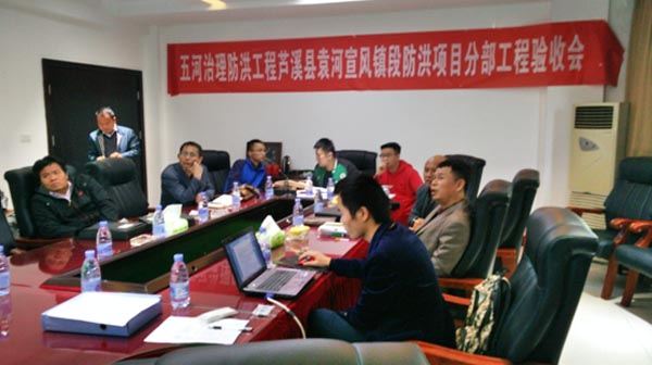 2016年10月31日,我公司承建的五河治理防洪工程蘆溪縣袁河宣風鎮(zhèn)段防洪項目在蘆溪縣水務(wù)局會議室主持召開了分部工程驗收會議,分部工程驗收工作組由江西省五河治理防洪工程項目部、蘆溪縣五河治理防洪工程項目部、江西省水利規(guī)劃設(shè)計院、江西省建洪工程監(jiān)理咨詢有限公司以及我公司等相關(guān)單位的代表組成。公司工程部郭洪有出席了此次驗收會議。