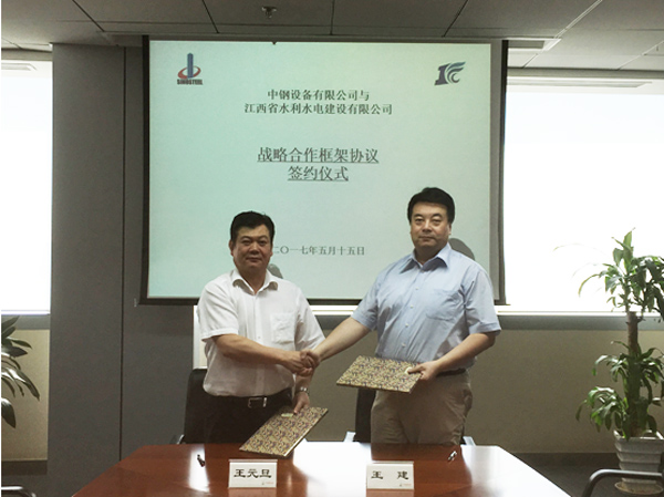 2017年5月15日,江西省水利水電建設有限公司與中鋼設備有限公司戰(zhàn)略合作框架協議簽約儀式在北京舉行。公司董事長王元旦與中鋼設備有限公司總經理王建代表雙方簽署了戰(zhàn)略合作框架協議。公司海外公司副總經理熊昊冠和中鋼設備能源與基礎設施部副部長閆永軍、國際市場部副部長王思奇、市場主管姬曉軍參加簽字儀式。王建表示中鋼公司有著海外平臺優(yōu)勢,江西水建擁有水利水電、房建和市政領域的技術優(yōu)勢,希望雙方以此次戰(zhàn)略合作簽署為契機,借助各自在資源、業(yè)務等方面的綜合優(yōu)勢,在巴基斯坦市場以及其他國別市場攜手共進,推進重點項目落地,共謀發(fā)展。公司董事長王元旦對中鋼設備的支持表示感謝。他表示此次合作將會是一個友好的開端,真誠希望雙方在國家“一帶一路”戰(zhàn)略指引下進一步加深交流,探索多方位、深層次合作,實現互利共贏。