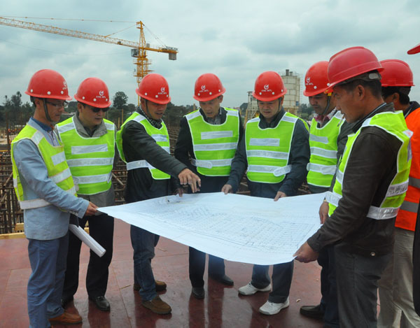 2014年8月8號(hào),公司董事長(zhǎng)王元旦、總會(huì)計(jì)師王義生,副總經(jīng)理張周平、黃鄭民一行抵達(dá)肯尼亞,開始了為期一周的巡視指導(dǎo)工作。剛下飛機(jī),董事長(zhǎng)王元旦一行便馬不停蹄地趕往位于肯尼亞首都內(nèi)羅畢的雙河房地產(chǎn)項(xiàng)目一期、二期工地進(jìn)行視察。
