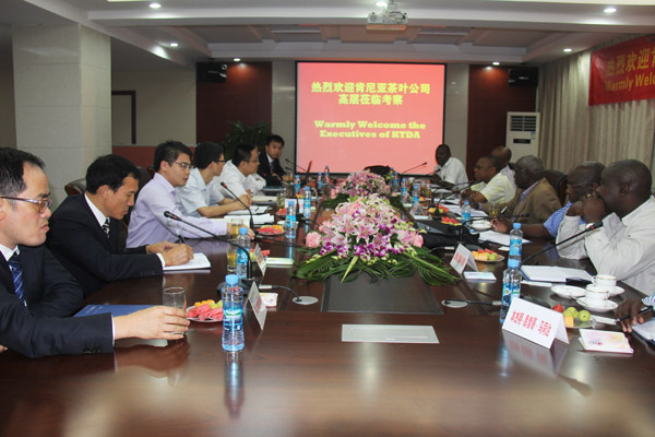 集團(tuán)資訊2014年9月上旬,肯尼亞茶葉發(fā)展有限公司董事Philip Kibirech NG’Etich先生一行七人應(yīng)邀來我公司參觀考察,旨在加深雙方了解和建立互惠共贏的合作。總經(jīng)理徐洪良代表公司對他們的到來表示熱烈歡迎,總會計師王義生、總工程師胡鴻煌及海外公司相關(guān)負(fù)責(zé)人參加了會見并陪同肯尼亞客人參觀了公司總部各部門。
