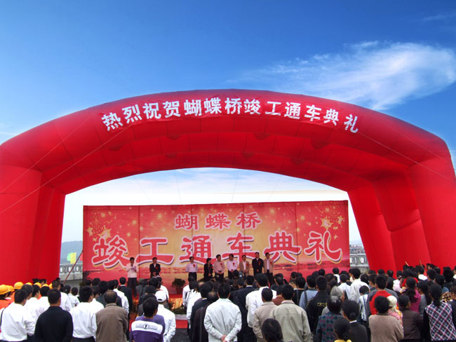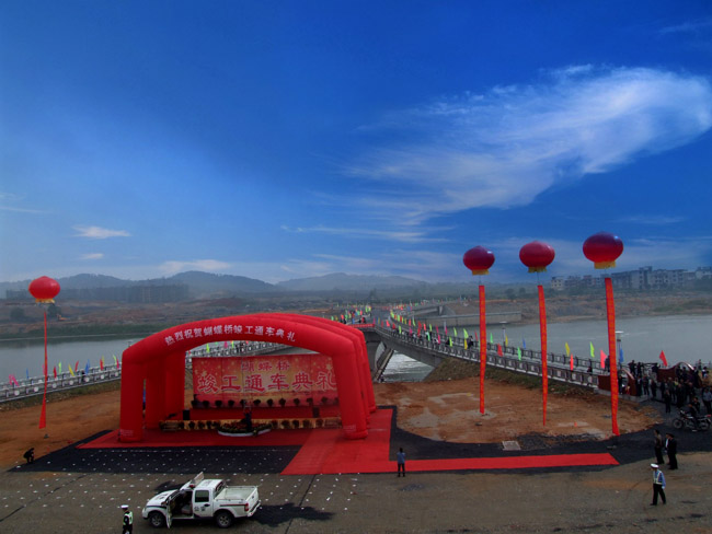 九月金秋,流光溢彩。2010年9月30日,在祖國(guó)華誕即將到來(lái)之際,我公司承建的宜春市秀江三級(jí)抬水壩及景觀橋(又稱(chēng)為蝴蝶橋)工程舉行了竣工通車(chē)典禮。