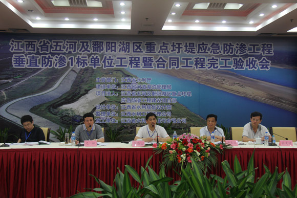 2011年5月8日,我公司承建的江西省五河及鄱陽(yáng)湖區(qū)重點(diǎn)圩堤應(yīng)急防滲處理工程垂直防滲1標(biāo)單位工程暨合同工程完工驗(yàn)收會(huì)在南昌市召開(kāi)。省水利廳廳長(zhǎng)孫曉山,廳紀(jì)委書(shū)記李東江,副廳長(zhǎng)文林、廳總工張文捷,省發(fā)改委、省財(cái)政廳、省水利廳有關(guān)處室及有關(guān)單位負(fù)責(zé)人,南昌市水利局等領(lǐng)導(dǎo)出席了會(huì)議。
