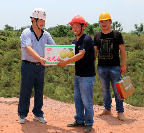 頂著炎炎烈日,王元旦董事長(zhǎng)一行先后來(lái)到盧前隧洞、北樓隧洞、曾家渡槽、渡王家渡槽、會(huì)源隧洞等施工現(xiàn)場(chǎng)進(jìn)行檢查,親切看望慰問現(xiàn)場(chǎng)員工,并送上了防暑降溫慰問品。每到一處,他總是親切詢問員工的工作與生活情況,并叮囑項(xiàng)目部要合理安排工作時(shí)間,保障防暑降溫物品的供給,為員工提供安全、清涼的工作與生活環(huán)境。