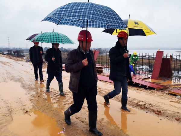 1月11日,由公司總工程師胡鴻煌、首席專家郭洪有、工程部副部長王海鵬組成的安全生產(chǎn)檢查組,冒雨來到禾河大道路堤結(jié)合改造工程施工2標(biāo)段,進(jìn)行安全生產(chǎn)、度汛安全檢查。