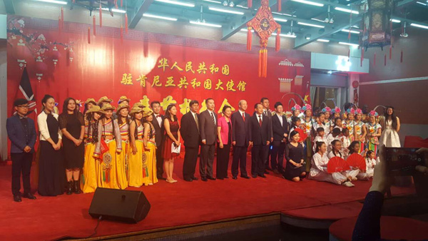 演職人員與中國駐肯尼亞大使劉顯法等合影留念