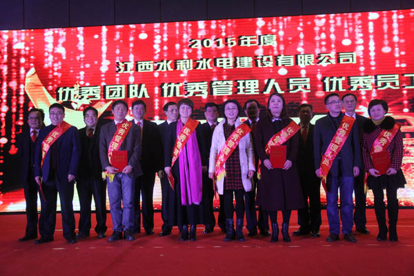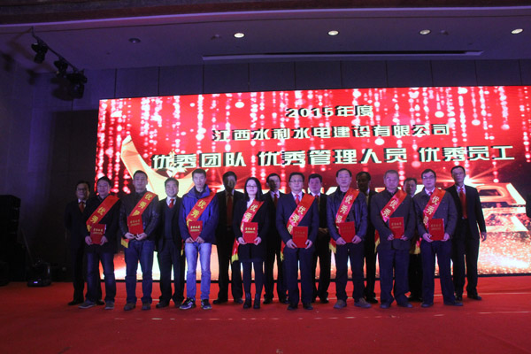 隨后,公司董事長王元旦、總經(jīng)理徐洪良和相關(guān)領(lǐng)導向海外公司等10個優(yōu)秀團隊、郭洪有等22位優(yōu)秀管理者和周家煌等30位優(yōu)秀員工進行頒獎,感謝他們在過去的2015年為江西水建發(fā)展所作出的貢獻。