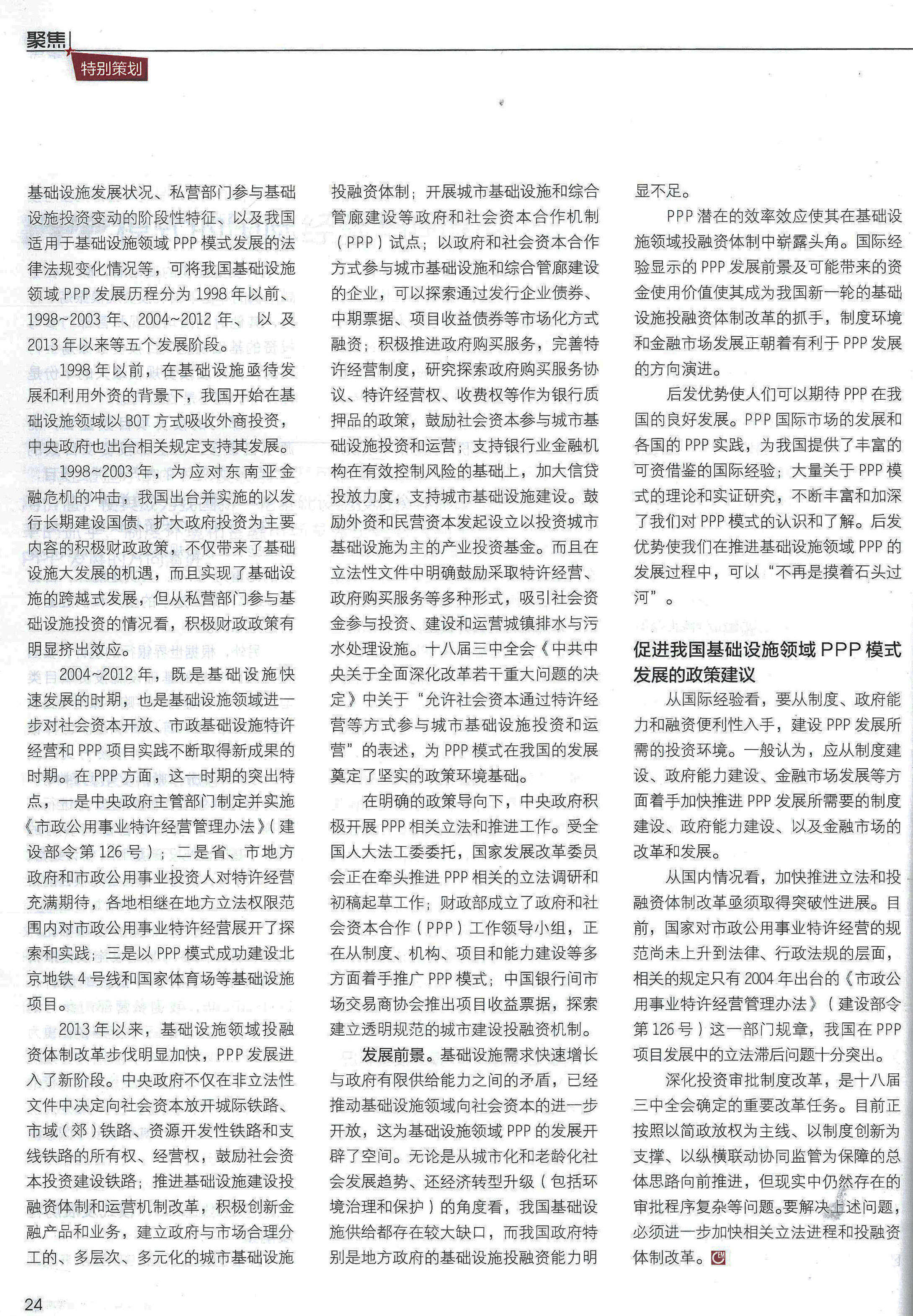國際經(jīng)驗顯示的PPP發(fā)展前景及可能帶來的資金使用價值,使其成為我國新一輪基礎設施投融資體制改革的抓手,制度環(huán)境和金融市場發(fā)展正朝著有利于PPP發(fā)展的方向演進。