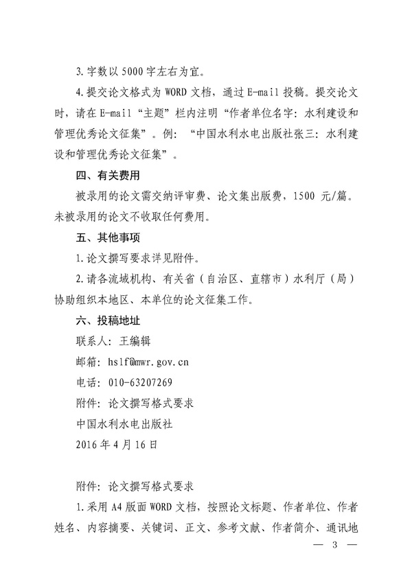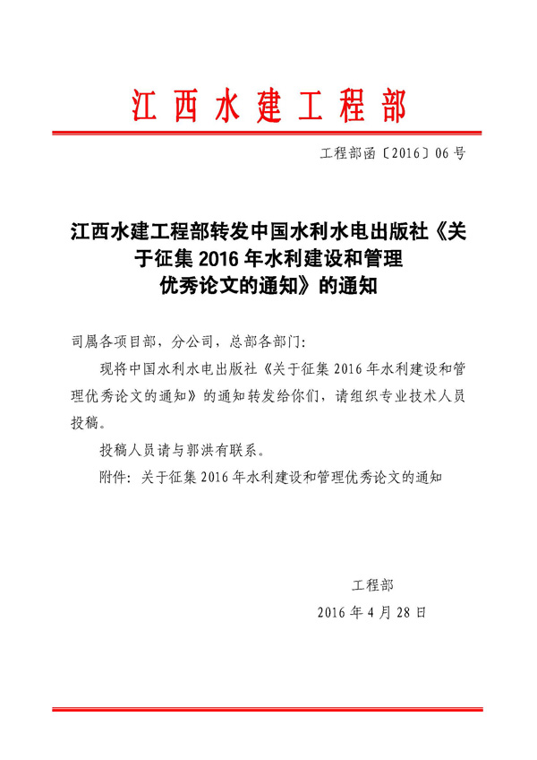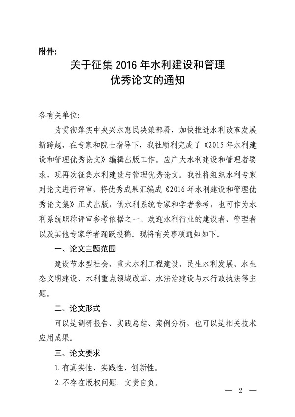 轉發(fā)征集2016年水利建設和管理優(yōu)秀論文的通知